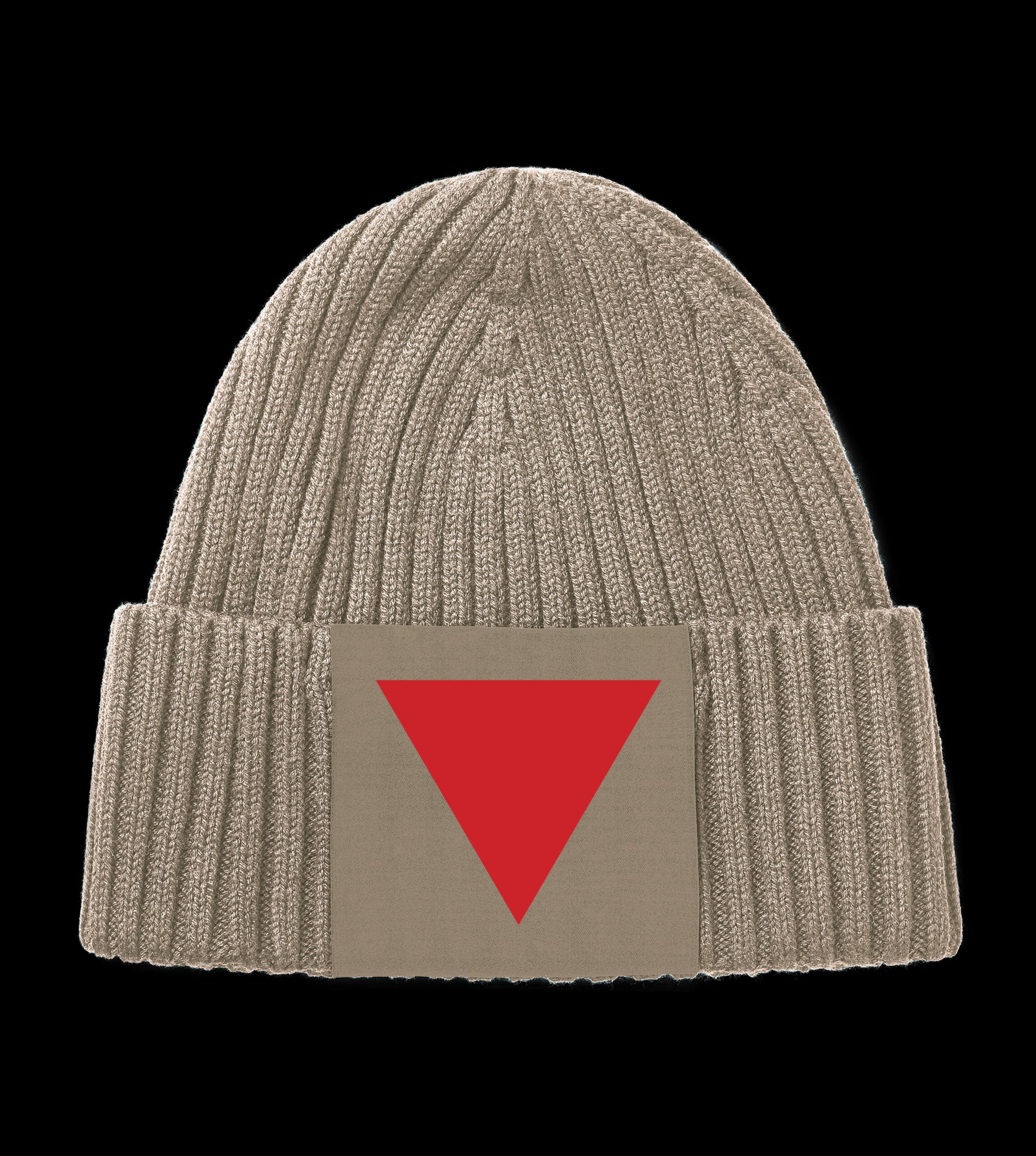 A chunky rib cotton beanie, inspired by a classic fisherman beanie, with a recycled 9×9 cm label on the front. The beanie has a turn-up fold with four stitches on each side so the fold stays in place. The label is attached with zigzag stitch for extra security and we’ve added a little bit of elastane in the composition to help retain its size and fit. Available in one size and three colourways.